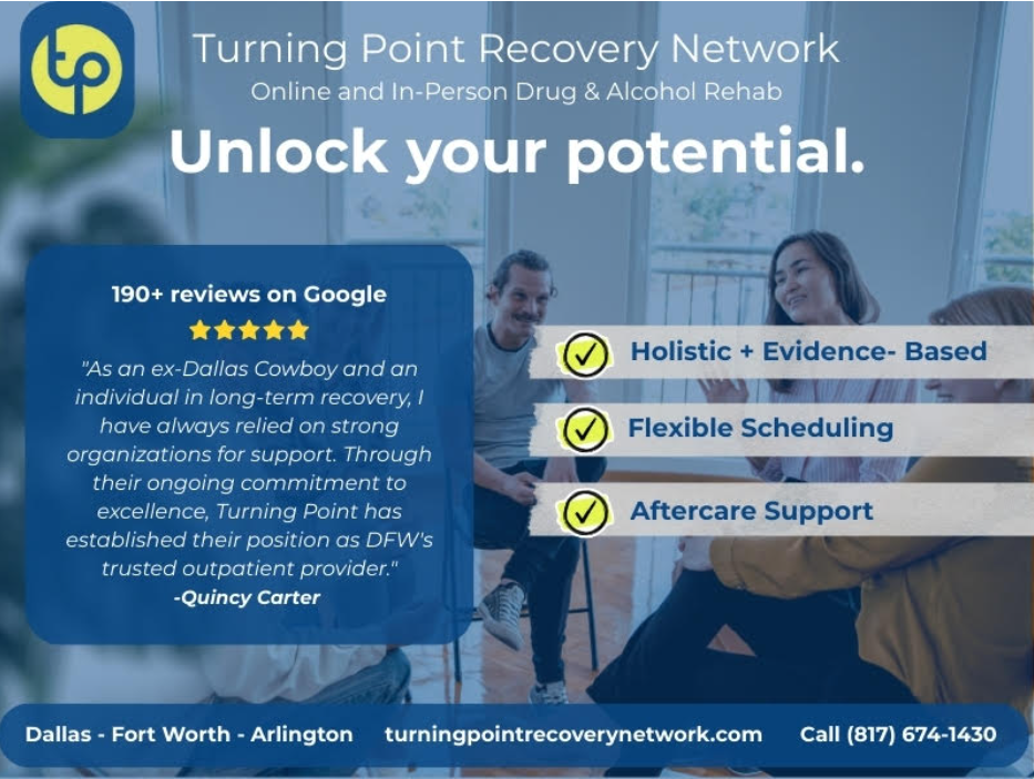 When families in Dallas start searching for help, they usually want one thing, does this actually work. Turning Point Recovery is an outpatient addiction and mental health treatment provider based in the Dallas Fort Worth area. They offer structured programs like Intensive Outpatient Programs and Partial Hospitalization Programs, both in person and online. Their customers are adults who need real support but still have jobs, families, and responsibilities. They are the best option for people who want serious clinical care without disappearing from their daily lives. That includes virtual care delivered across Texas for those who cannot attend in person.
