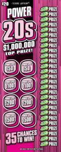 This was the first of four top prizes worth $1 million to be claimed in this game. Power 20s offers more than $91.7 million in total prizes. Overall odds of winning any prize in the game are one in 3.61, including break-even prizes.