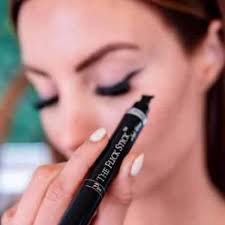 Draw a line directly from the dot to the outer corner of your eye or for a perfect easy application use a Lovoir eyeliner stamp. That will be the bottom part of the wing. Therefore, you want to make sure it is neat and sharp. If it needs to be cleaned up somewhat, add makeup to a q-tip. Don’t worry about making it look perfect on your first try. The good thing is that it doesn’t matter what type of eyeliner you use since any product can be used for this step. You can get this done, whether you are an expert with liquid or a beginner with a brush.