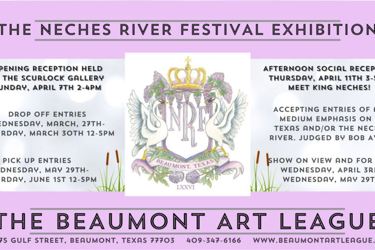 BEAUMONT – The Beaumont Art League announces two Neches River Festival events; an Artist Opening Exhibition Reception, Sunday, April 7, 2 p.m. to 4 p.m. and reception for The NRF King and his Court, Thursday, April 11, 3 p.m. to […]