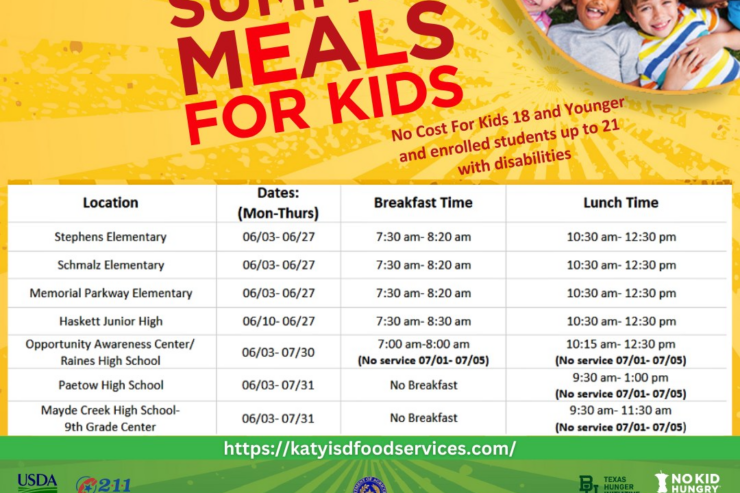 Free Breakfast and Lunch Meals will be Available to All Students KATY, TX [May 29, 2024] – Let Katy ISD help fuel your summer snackers! Beginning Monday, June 3, the district will be providing free breakfast and lunch meals to all children, aged […]