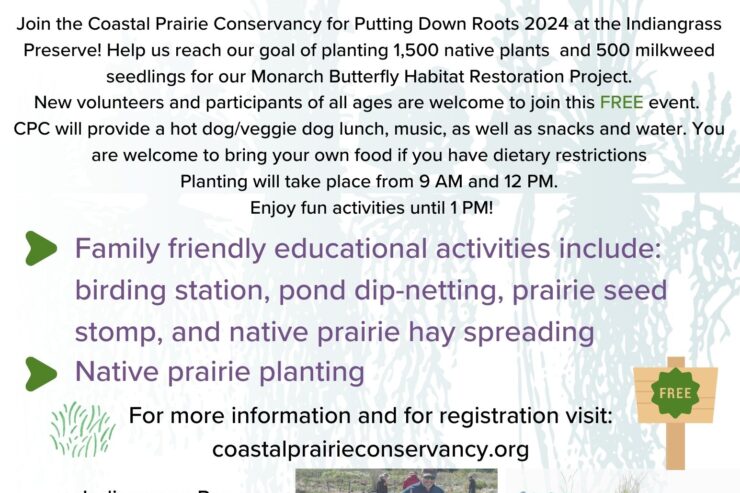 What: Join the Coastal Prairie Conservancy (CPC) for Putting Down Roots 2024 on Saturday, November 9th from 9 AM to 1 PM at the Indiangrass Preserve! Help us reach our goal of planting 1,500 native plants and 500 milkweed seedlings […]