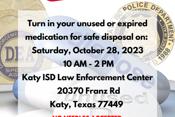 KATY, TX [October 25, 2023] – The Katy ISD Police Department is partnering with the Drug Enforcement Administration (DEA) for the biannual National Prescription Drug Take Back Day. On Saturday, October 28, the community will have the opportunity to conveniently and […]