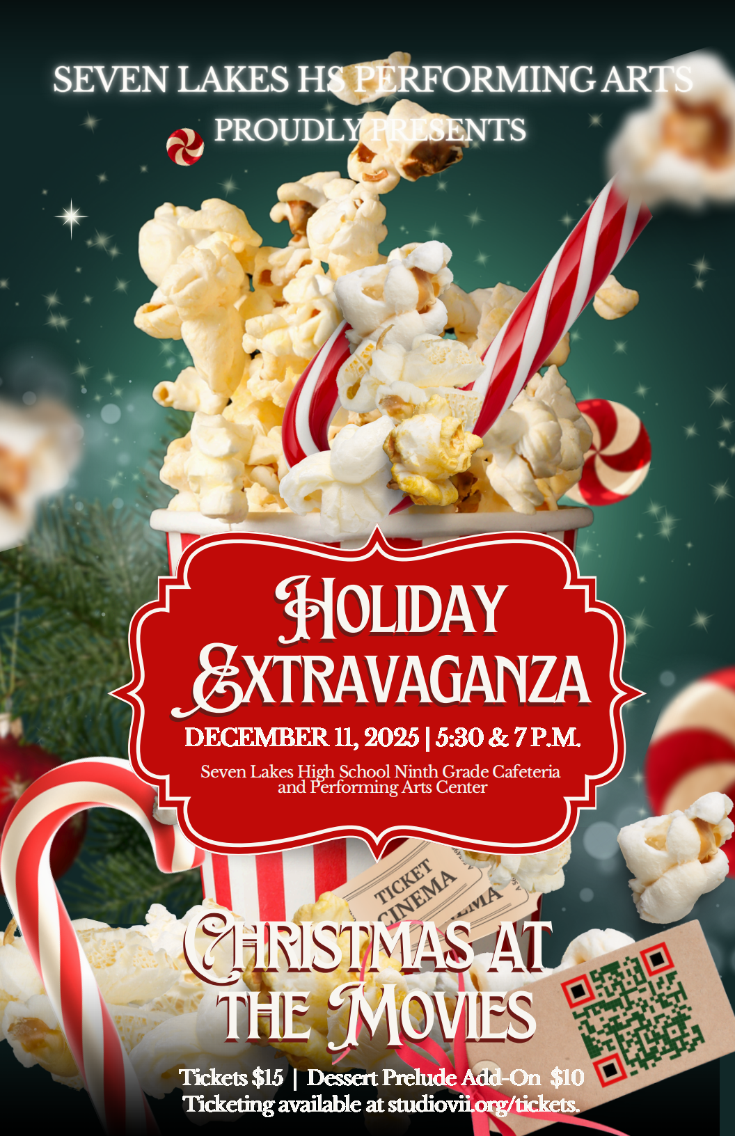DECEMBER 11, 2025 | 5:30 & 7 P.M. Seven Lakes High School Ninth Grade Cafeteria and Performing Arts Center Christmas at the Movies Tickets $15 | Dessert…