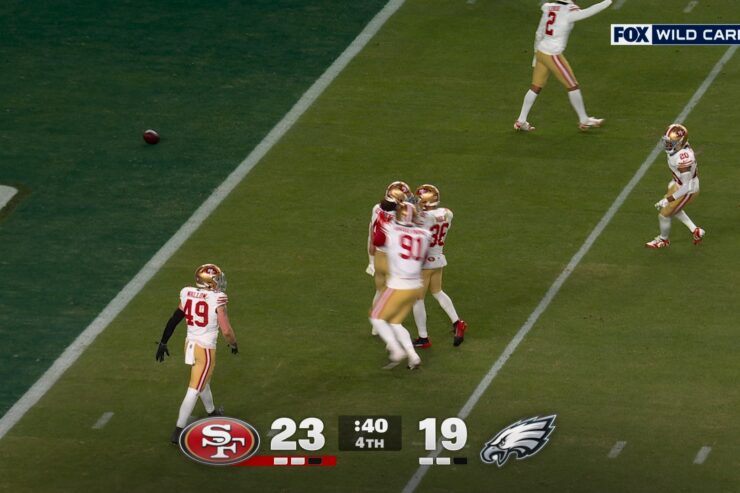 San Francisco 49ers came up with a game-clinching fourth-down stop against the Philadelphia Eagles, sealing their victory and advancing the 49ers to the Divisional Round.