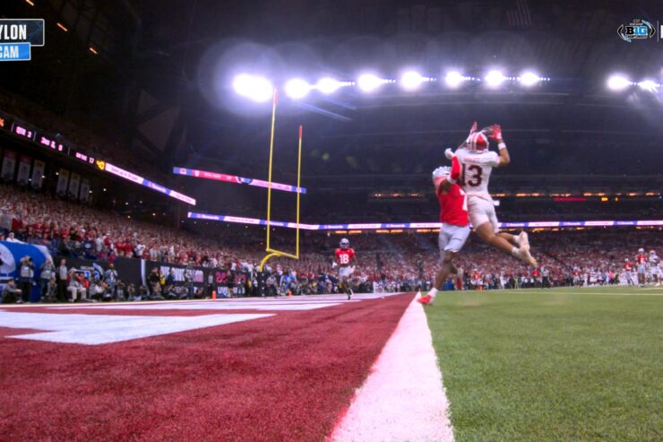 Fernando Mendoza found Elijah Sarratt for an amazing touchdown that gave the Indiana Hoosiers a 13-10 lead over the Ohio State Buckeyes.