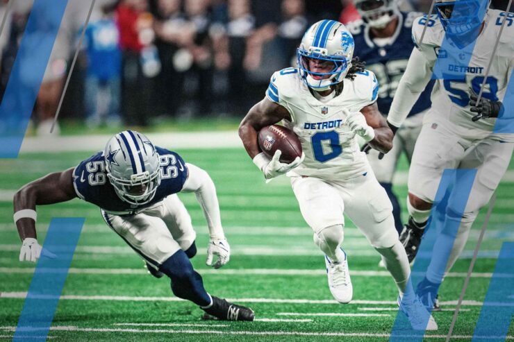 Jahmyr Gibbs carried Detroit to a 44–30 win in Dallas, scoring three touchdowns — including the 13-yard clincher with 2:19 left — as the Lions rebounded to 8–5 and stayed atop the NFC wild-card race.
