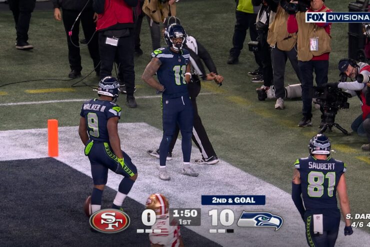 Sam Darnold found Jaxon Smith-Njigba for a four-yard touchdown that extended the Seattle Seahawks' lead over the San Francisco 49ers.