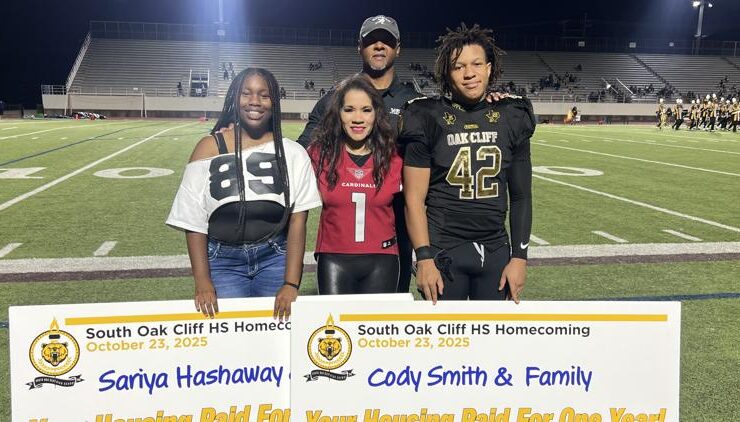 The donation was made during halftime of South Oak Cliff’s homecoming game and one of the recipients was football player Cody Smith.
