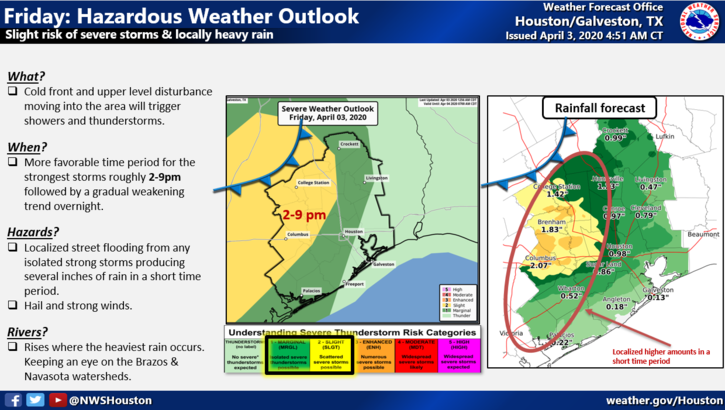 What is the danger? According to the National Weather Service, severe weather is expected across southeast Texas Friday afternoon and evening as a cold front moves through the area. Thunderstorms are possible with this system, with the strongest storms occurring between […]