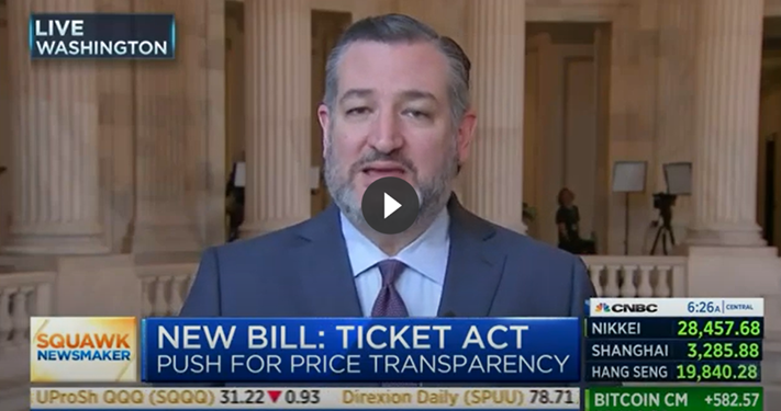 WASHINGTON, D.C. – Following the introduction of the TICKET Act, Sen. Cruz joined CNBC’s Squawk Box, Newsmax’s Wake Up America, and Outkick’s Don’t @ Me with Dan Dakich to tout this bipartisan, pro-consumer legislation to bring pricing transparency to the market for tickets to sporting events and concerts. Excerpts of […]