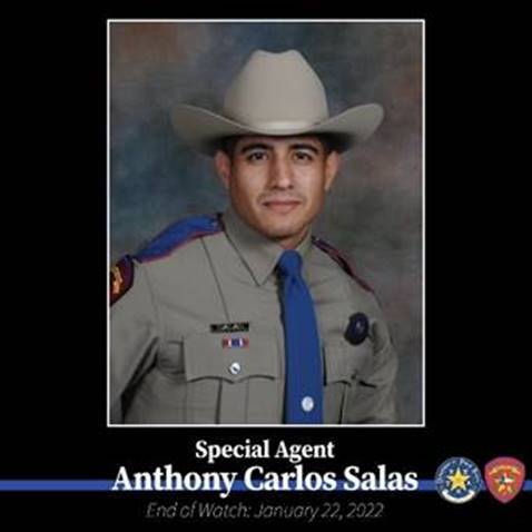 It is with great sadness, the Texas Department of Public Safety (DPS) announces the death of DPS Special Agent Anthony Salas. On Friday, Jan. 21, 2022, around 7:30 p.m., Special Agent Salas was conducting tactical operations in Maverick County as […]